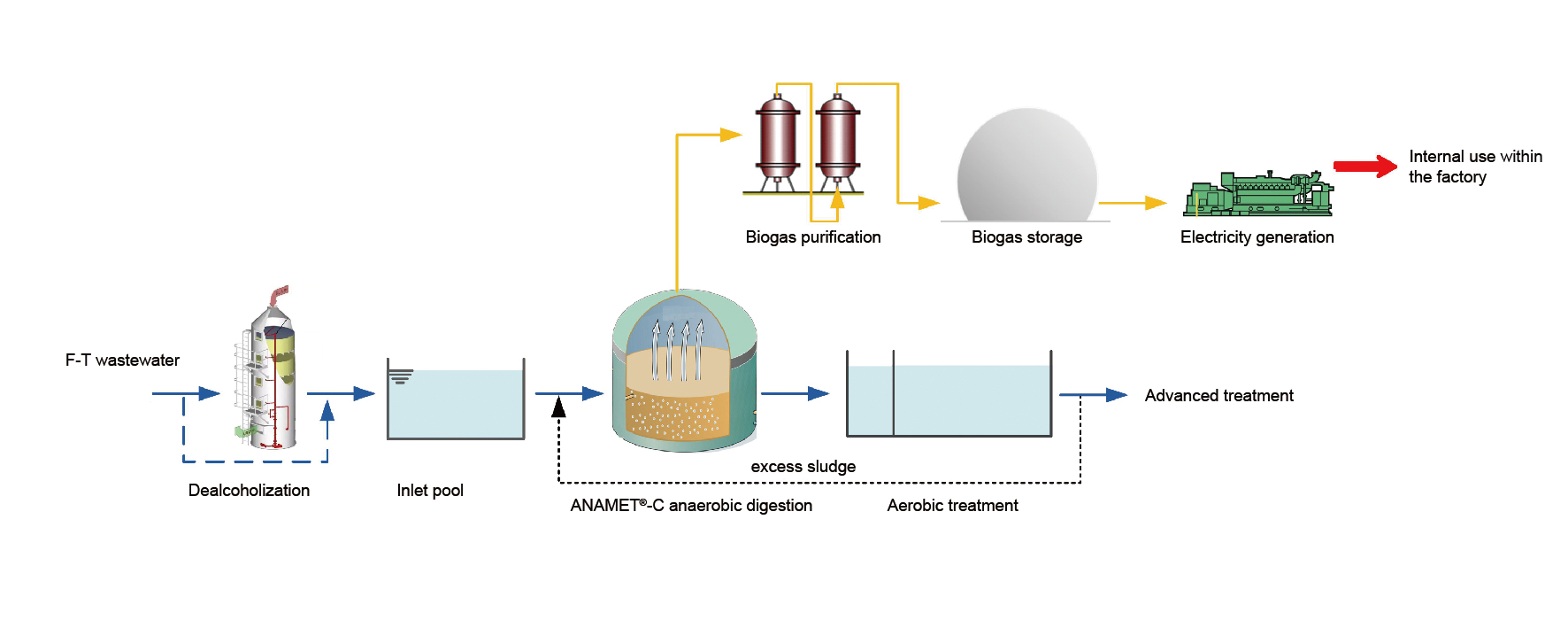 ANAMET®-C is a highly efficient anaerobic process developed by Purac based on ANAMET ® process, specifically for the treatment of high COD and low pH acidic wastewater, especially suitable for coal indirect liquefaction Fischer Tropsch synthesis wastewater and acrylic acid wastewater. This process has been experimentally proven in Yitai Coal Chemical Project.